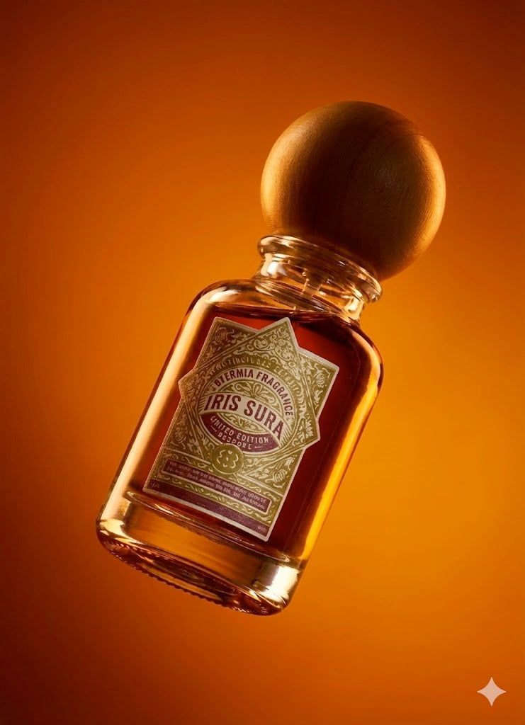 Iris Sura stands as a rare and uncompromising interpretation of the precious Iris flower that refuses to rely on the usual synthetic shortcuts found in modern perfumery. Instead of chemical ionones that create a common lipstick effect, this artisanal fragrance is built almost entirely from high-grade natural Orris ingredients sourced from the world's most respected producers. The result is a composition with a smooth and velvety texture that captures the true waxy soul of the rhizome while being enveloped in a gourmand warmth of white chocolate and honey.